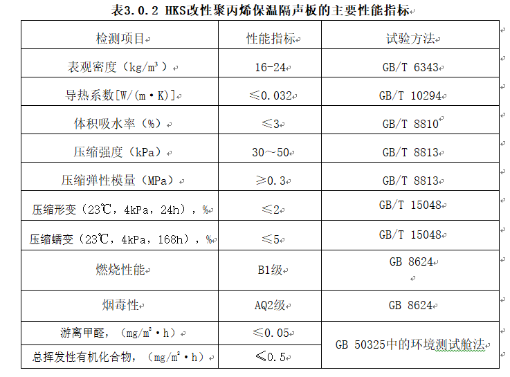 HKS改性聚丙烯保溫隔聲板性能指標